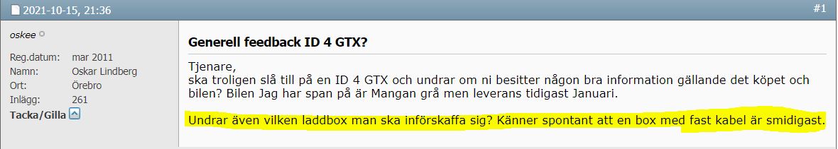 Också beställt en Id4 Gtx, från Möller Uppsala. Tillverkas v43. Mangan grey blev det. Inget panoramatak, har hört att bilarna med det tillvalet dröjer i lev tid.