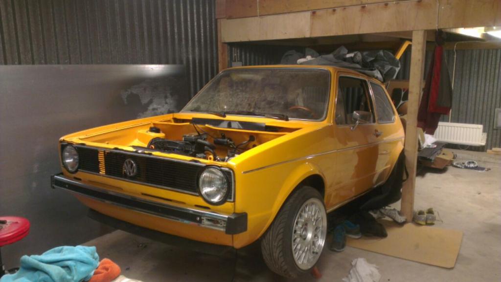 Bilen startades upp och gick varm för första gången, verkar gå riktigt bra i maskinen. Kan bli en trevlig start på nästa års vårsol. Imorgon kommer förhoppningsvis växellådslänkaget falla på plats så en video på bilen i rull imorgon kväll hoppas jag på.